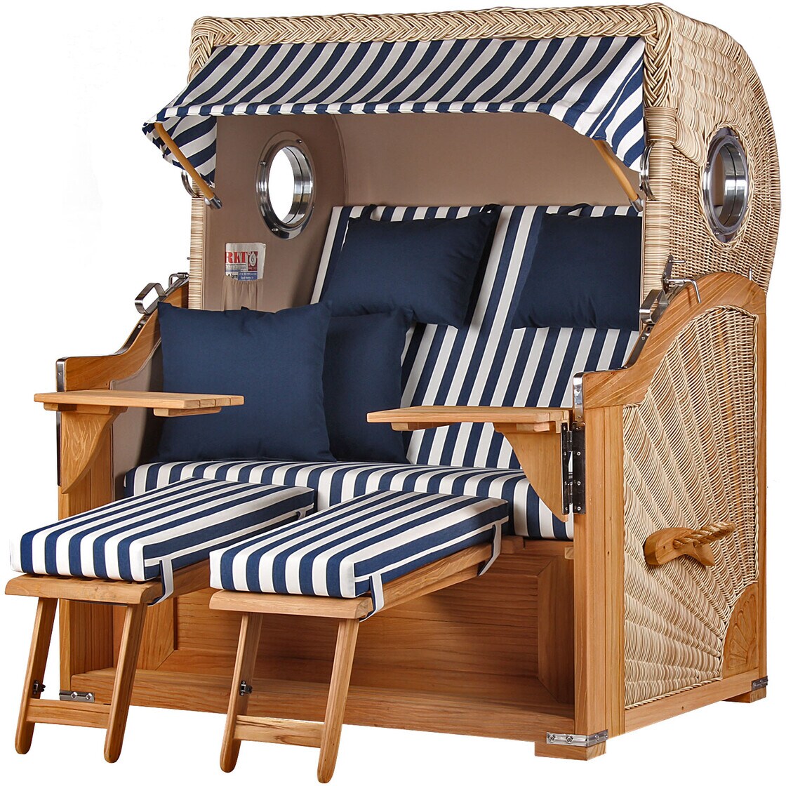 Mr. Deko Strandkorb Komplettset - bene living - Königssee Teak Bullauge - PE shell - Modell 518 - inkl. Liftersystem