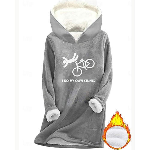 Per donna Felpa con cappuccio Grafico Lettera Caldo Casual Pile Sherpa Manica Lunga Con Cappuccio Top lunghi Streetwear Abbigliamento Quotidiano Casuale Stampato Foderato in pile Rosa scuro Blu Grigio