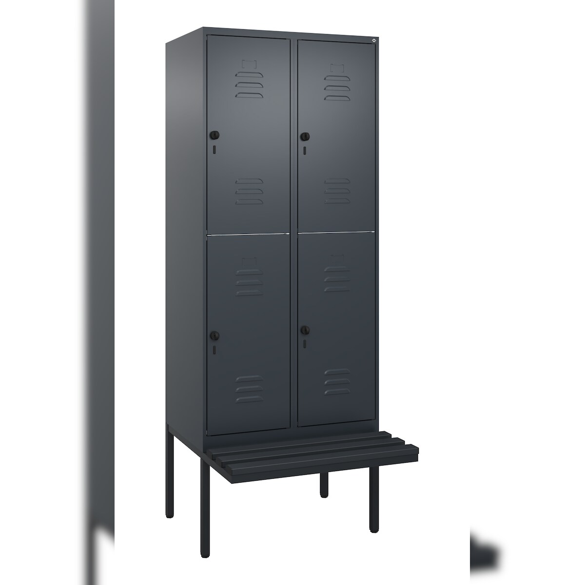 C+P Spind Classic PLUS, Sockel, 4 Abteile, HxBxT 195x100x50cm, Sicherheitsdrehriegel, Anthrazit/Hellgrau von PROREGAL