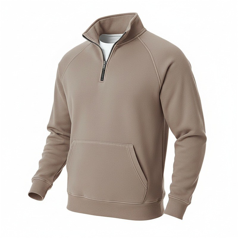 Men's Sweatshirt Fleece Sweatshirt Pullover Hoodie Sweatshirt Quarter Zip Sweatshirt Apricot Black White Camel Light Grey Standing Collar Plain Patchwork Kangaroo Pocket Casual Daily Sports Outdoor