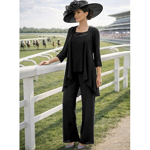 Tre Pezzi Lunghezza al pavimento Abito da cerimonia per signora Manica Lunga Girocollo Elegante Vintage Formale Ospite di nozze Serata Formale Spandex con Tinta unita