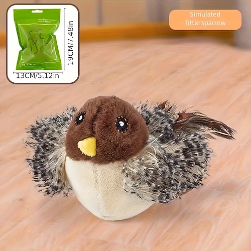 Giocattolo ricaricabile per gatti a forma di uccellino che sbatte le ali, uccellino elettrico che cinguetta con oscillazione automatica, erba gatta, corda elastica, cavo di ricarica USB e telecomando