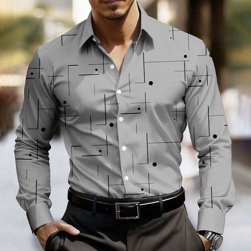 Men's Geometric Round Dots Abstract Art Shirt Button Up Shirt Long Sleeve Fashion Casual Outdoor Dailywear Spring Fall Turndown 3D Print Collared Shirts Blue White Green Gray