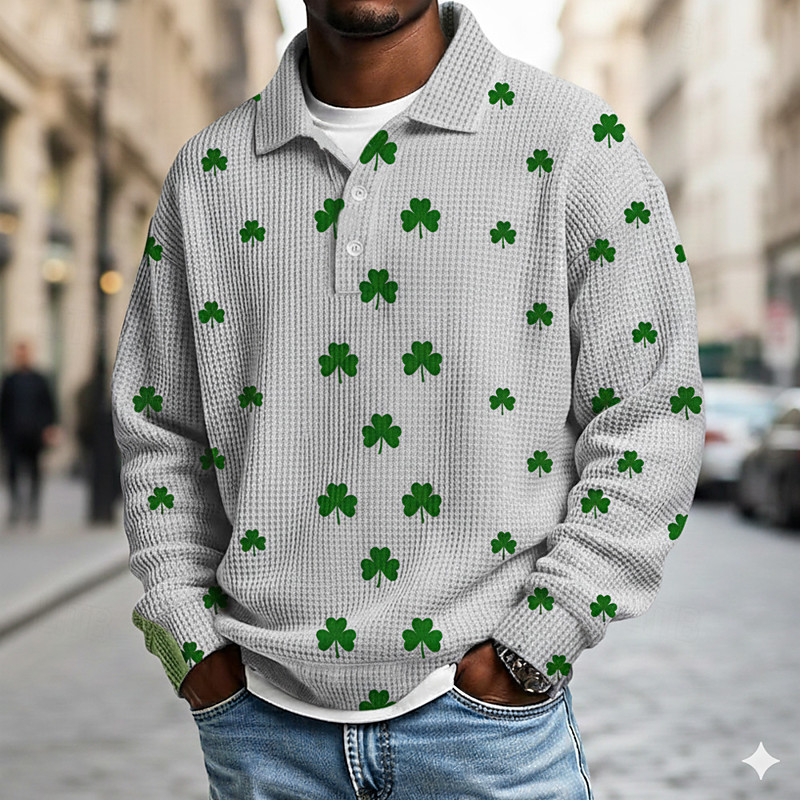 St. Patrick Men's Clover Waffle Polo Shirts Polo Long Sleeve Polo Shirts Lapel Casual Athleisure Daily Wear Festival Outfit 3D Print Spring White Yellow Purple