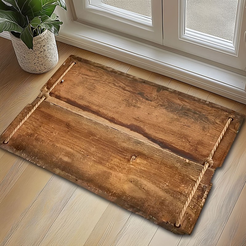 Curved Faux Wood Bathroom Mat, Absorbent Quick-Dry Anti-Slip Entryway Rug, Doorway Floor Mat, Hallway Carpet, Home Floor Protection