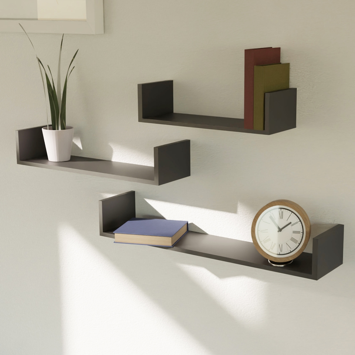 3er Wandregal Bücherregal CD Board Schweberegal MDF B30/45/60cm