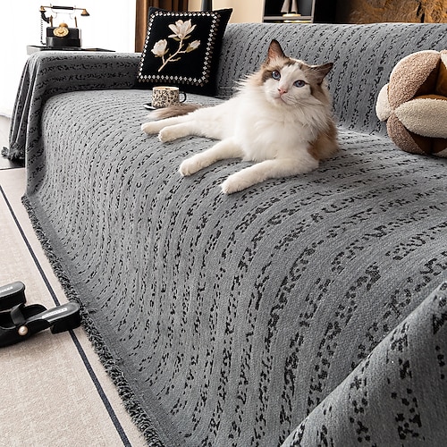 fodera per divano in ciniglia, fodera a righe minimalista, lussuosa protezione antiscivolo per divano, fodera per divano adatta agli animali domestici, coperta universale per divano