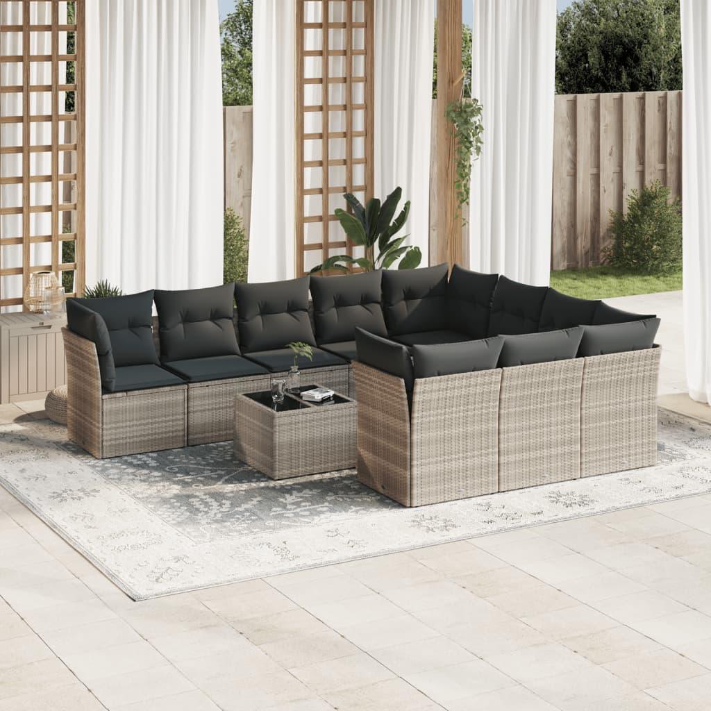 Loungesæt til haven 11 dele med hynder polyrattan grå