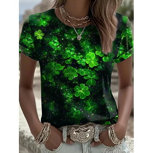 T-shirt da donna di St. Patrick per San Patrizio animale casual manica corta colletto rotondo tops regolari stampa quotidiana verde estate