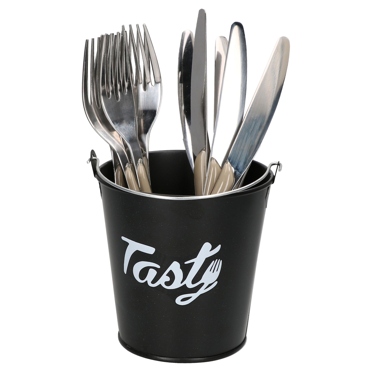 Metall-Eimer schwarz mit Besteck für 6 Personen – 22275624, 805536, 805529