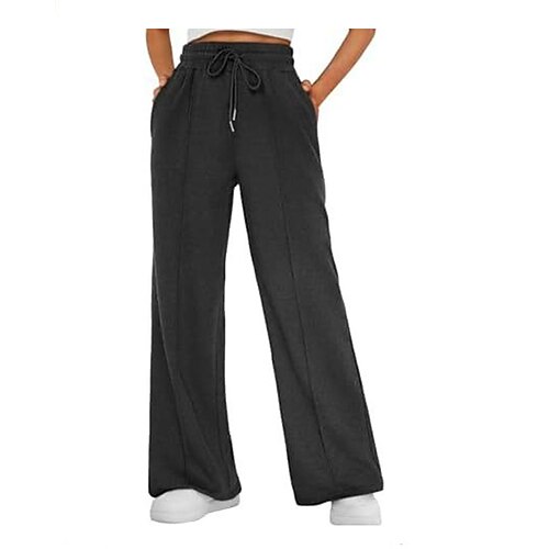 Per donna Gamba larga Pantaloni Dritto Moda Streetwear Classico Lunghezza intera Vita media Semplice Coulisse Tasca Traspirabilità Morbido Confortevole Micro-elastico All'aperto Vacanza Lavoro Nero