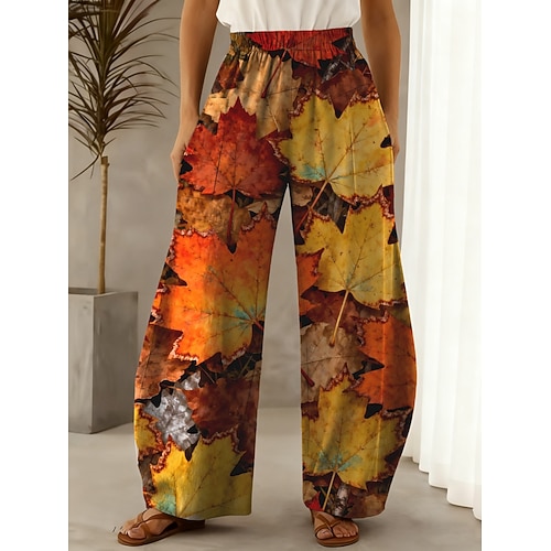 Per donna Gamba larga Pantaloni Vintage Casual Lunghezza intera Vita Alta Grafico Foglia Coulisse Tasca Fascia Elastica Comodo Comodità Traspirabilità Elasticizzato Casuale Quotidiano Vacanza Rosso