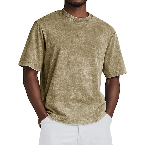 Per uomo Maglietta Manica Corta Girocollo Estate Autunno Retrò Colore Solido / Tinta Unita Moda Designer Nostalgico Moda Vintage ▾ Vacanza Streetwear Uscire Nero Verde chiaro Azzurro cielo Maglietta