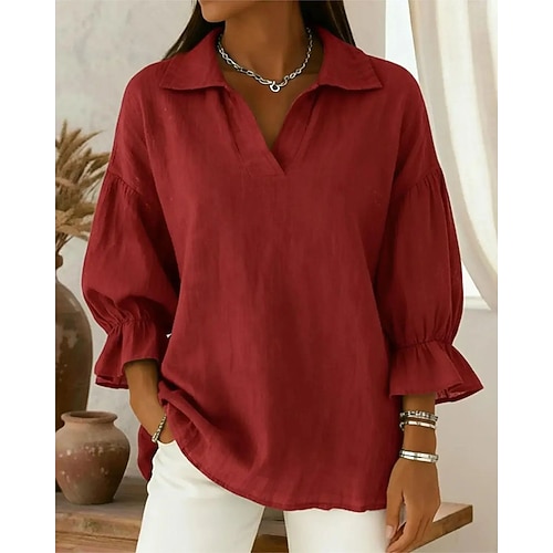 Per donna Camicia Boho Blusa Quotidiano Casual Manica Lunga Scollo a V Top Regolari Champagne Giallo Rosa Azzurro cielo Viola Estate Primavera Autunno