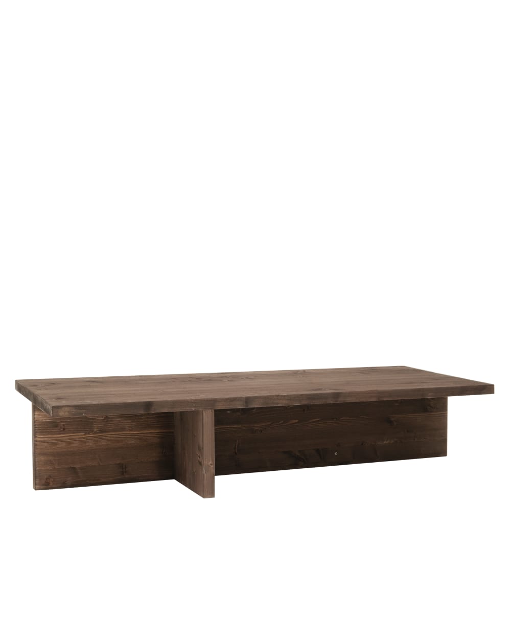 Tavolino basso rettangolare in legno di abete noce 123,5x27cm