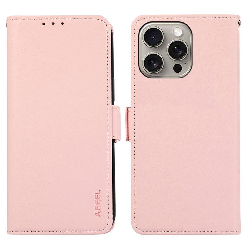 ABEEL iPhone 16 Pro Max Plånboksfodral Konstläder RFID-Skydd Ställ - Rosa