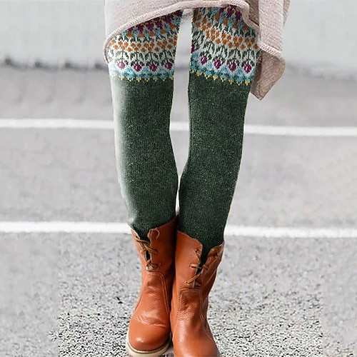 Leggings Boho Viking da donna Vacanza Moda Vintage Full Length Alta Vita Grafica Geometrica Stampa Astratta Termici Caldi Morbidi Traspirabili Elasticizzati Formali Vacanza Rossi Blu Verdi Estate