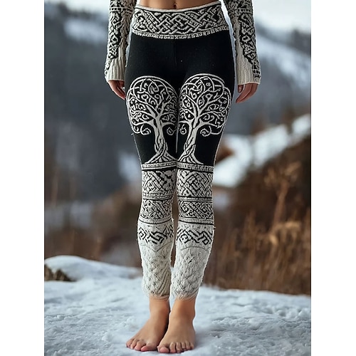 Leggings da donna Viking Boho vacanza stile etnico vintage a lunghezza intera vita alta albero grafico astratto quick dry traspirabilità morbido elasticizzati formali outdoor vacanza nero primavera