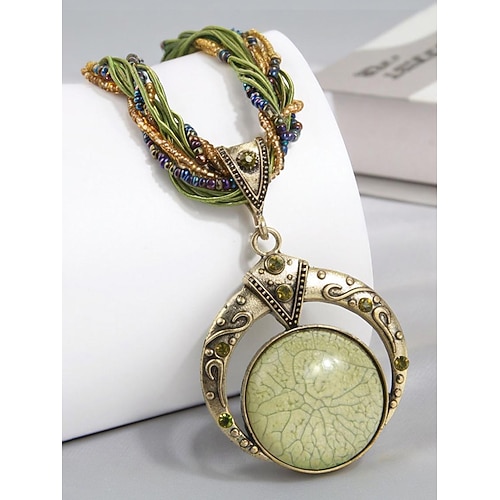 Collana in lega bohémien da donna con corda di perline multicolori, ciondolo dal design unico, perfetta per un abbigliamento casual e da festa