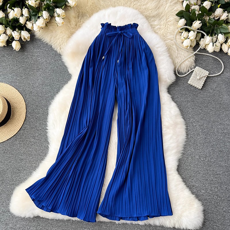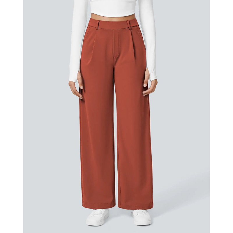 Women's Wide Leg Chinos Casual Full Length Natural Plain Pleated Wide Leg Comfy Breathability Casual Daily Black Pink Light Green Blue Spring Fall Loose Fit