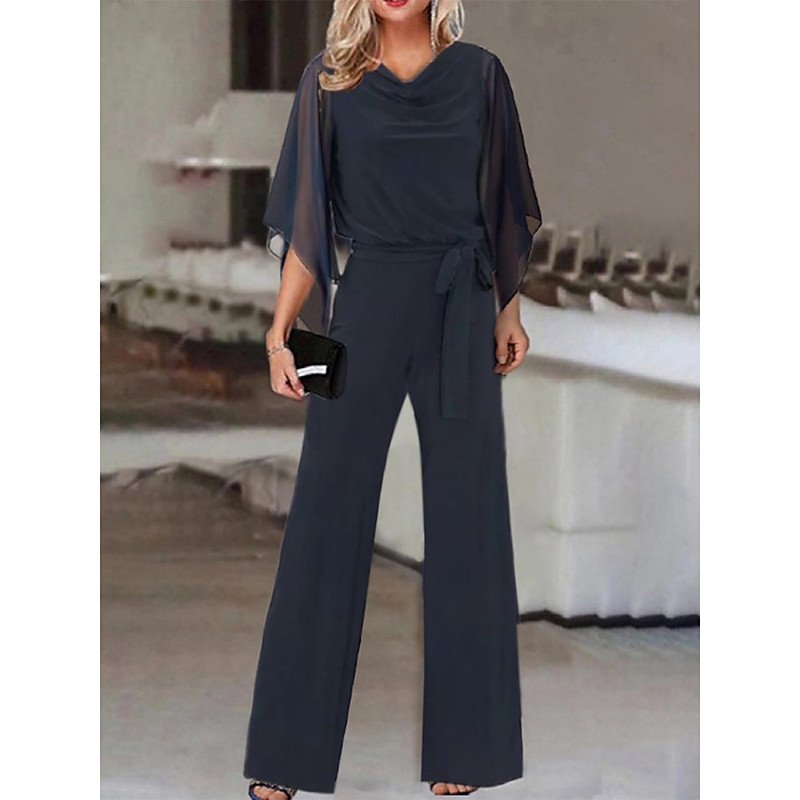 Women's Normal Jumpsuit Elegant Solid Color Half Sleeve Wide Leg Crew Neck High Waist Vacation Daily Regular Fit Black Wine Navy Blue Spring
