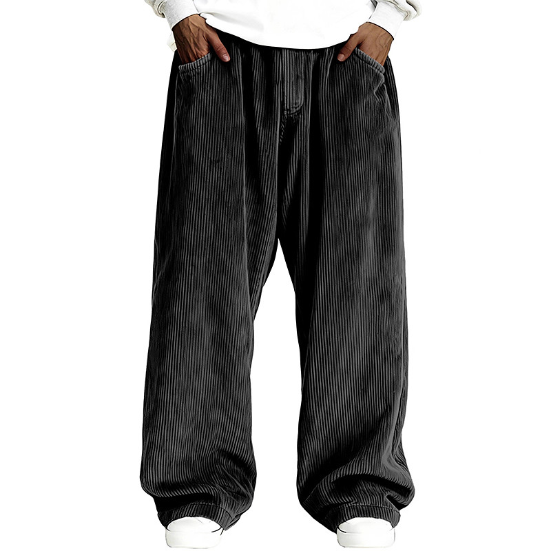 Men's Trousers Corduroy Pants Baggy Pants Casual Pants Straight Leg Sweatpants Drawstring Wide Leg Solid Color Comfort Full Length Casual Daily Outdoor Fashion Classic Style Loose Fit Black White