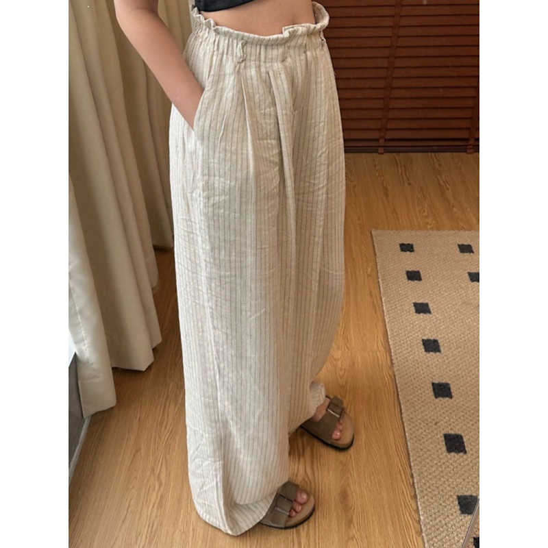 Women's Wide Leg Chinos Vacation Fashion Streetwear Full Length High Waist Stripe Pocket Elastic Waistband Printing Comfy Comfort Soft Inelastic Outdoor Street Beige Fall Loose Fit