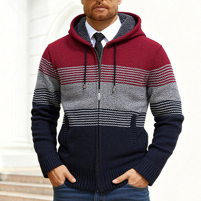 Men's Cardigan Sweater Cropped Sweater Ribbed Knit Regular Knitted Hooded Warm Ups Modern Contemporary Daily Wear Going out Clothing Apparel Fall Winter Wine Red Blue M L XL