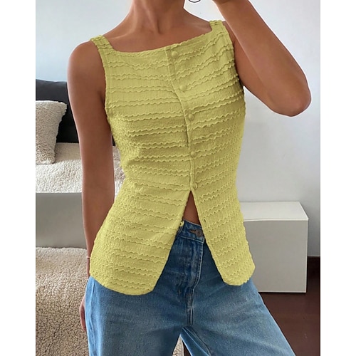 Damen Tank Top T-Shirt Einfarbig Elegant Mode Ärmellos Quadrathals Normale Oberteile Täglich Ausgehen Wochenende Knöpfe Schwarz Weiß Gelb Rosa Grün Sommer Frühling