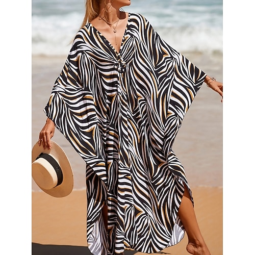 Per donna Abito maxi Abito da Spiaggia Vestito Casual Abito Boho Copricostume Elegante Moda Moderno All'aperto Spiaggia Vacanza Vestibilità comoda A righe Manica Corta Scollo a V Blu Nero Bianco Rosa