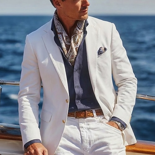 Per uomo Blazer di Lino Colletto ad incastro Moda Leggero Tinta unita Blazer Blazer in lino Bianco Rosa Azzurro cielo Vestibilità su misura Monopetto Due Bottoni