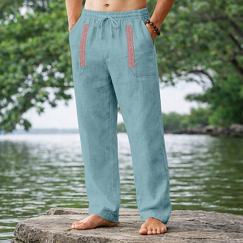 Per uomo Pantaloni di Lino Pantaloni Estivi Pantaloni da Spiaggia Coulisse Patchwork Gamba Dritta Semplice Comodità Traspirante Lunghezza intera Casuale Quotidiano Ferie Vacanza Moda Nero Bianco