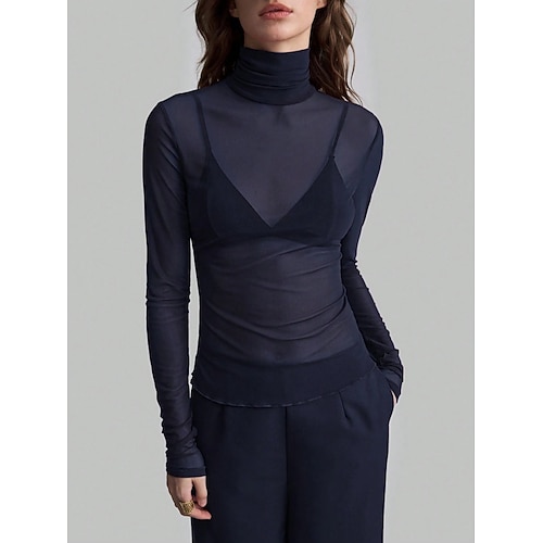 Per donna Blusa Tinta unica Elegante Essenziale Casual Manica Lunga Dolcevita Top Regolari Quotidiano Patchwork Rete Verde salvia Nero Vino Blu marino Marrone Estate Primavera Autunno