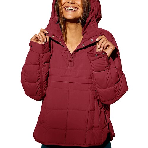Per donna Pullover Felpe con cappuccio Semplice Streetwear Casual Manica Lunga Con Cappuccio Top Regolari Streetwear Abbigliamento Quotidiano Tasca Bottoni Nero Bianco Rosso Arancione Marrone Autunno
