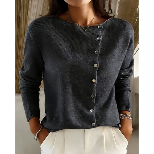 Per donna Felpa Cardigan Elegante Streetwear Casual Tinta unica Girocollo Lavorato a maglia Manica Lunga Top Regolari Maglia Quotidiano Ferie Uscire Blu Nero Primavera Autunno