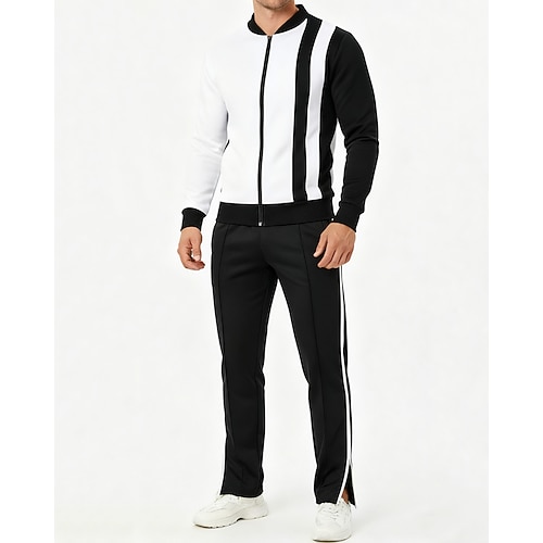 Per uomo Maglia Tuta da Ginnastica Set di abiti Collo alla coreana All'aperto Quotidiano Sportivo Coulisse Con zip Tasca Blocco di colori Nero Bianco Blu marino Abbigliamento sportivo Moda Streetwear
