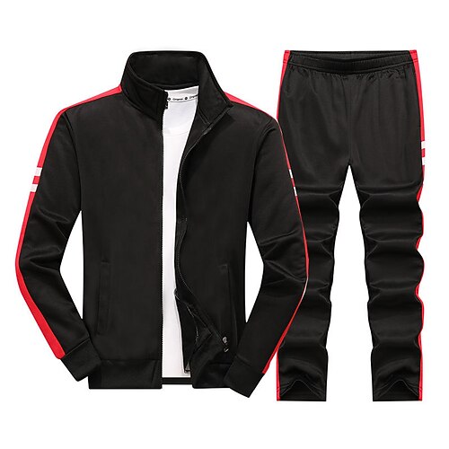 Per uomo Maglia Tuta da Ginnastica Set di abiti Girocollo All'aperto Quotidiano Sportivo Coulisse Tasca Blocco di colori Rosso bordeaux Nero Bianco Poliestere Abbigliamento sportivo Moda Streetwear