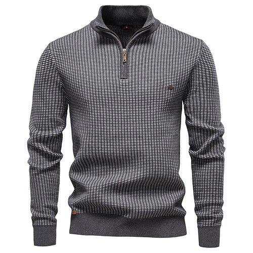 Per uomo Maglione Treccia Maglia Top Regolari Mezza cerniera Blocco di colore Geometrico Colletto Mao Elegante Cool Scuola Vacanza Abbigliamento Primavera Autunno Nero Marrone S M L
