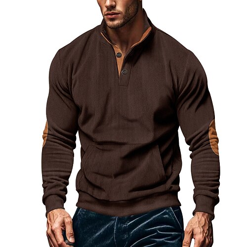 Per uomo Maglia Aalbicocca Nero Verde militare Marrone Grigio chiaro Colletto Mao Blocco di colori Tasca Sport Outdoor Quotidiano Ferie Poliestere Velluto a coste Streetwear Essenziale Casual
