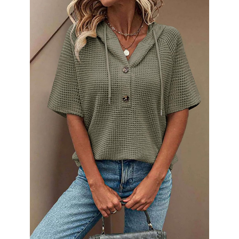 Women's Blouse Plain Basic Modern Short Sleeve V Neck Regular Tops Daily Buttons Black White Pink Red Navy Blue Summer
