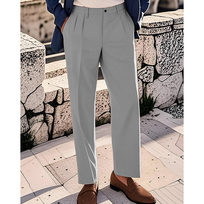 Men's Cotton Pants Chinos Buttons Pocket Pleats Plain Comfort Work Business Classic Style Black Navy Blue Micro-elastic
