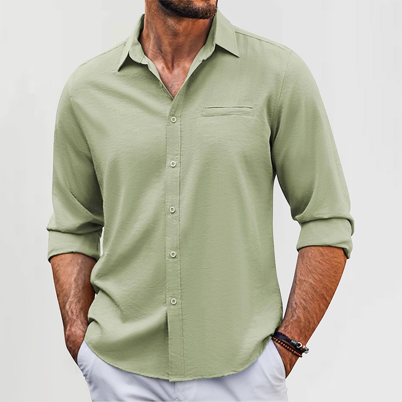 Men's Cotton Linen Shirt Plain Vacation Black White Green Apricot Long Sleeve Lapel Clothing Apparel Front Pocket
