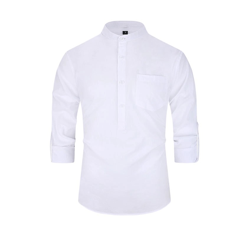 Men's 100% Cotton Shirt Black White Yellow Red Dark Navy Long Sleeve Plain Grandad Collar School Formal Clothing Apparel Minimalist