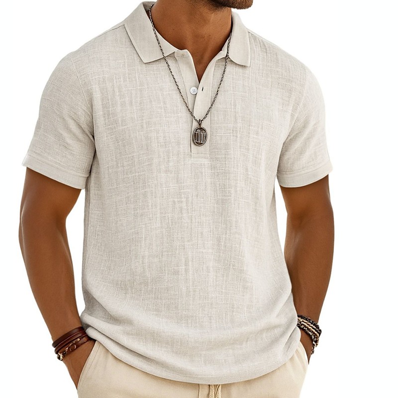 Men's Polo Textured Casual Holiday Classic Short Sleeve Fashion Modern Jacquard Buttons Summer Spring Regular Fit Black White Beige Light Blue Gray Polo