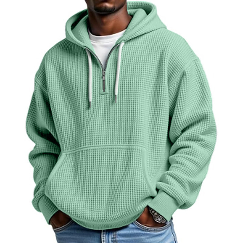 Men's Hoodie Waffle Hoodies Quarter Zip Hoodie White Light Green Army Green Red Navy Blue Hooded Plain Kangaroo Pocket Textured Sports Outdoor Casual Daily Streetwear Cool Sportswear Fall Spring