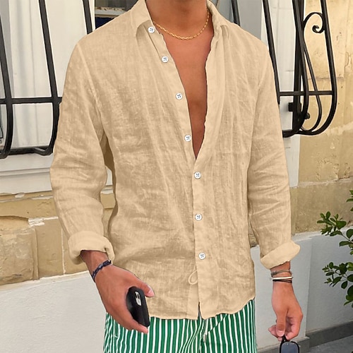Per uomo Camicia Camicia di lino Camicia in cotone e lino Camicia bianca di cotone Camicia con colletto cinese Camicia con colletto alla coreana Semplice Vacanza Streetwear Bianco Blu reale Grigio
