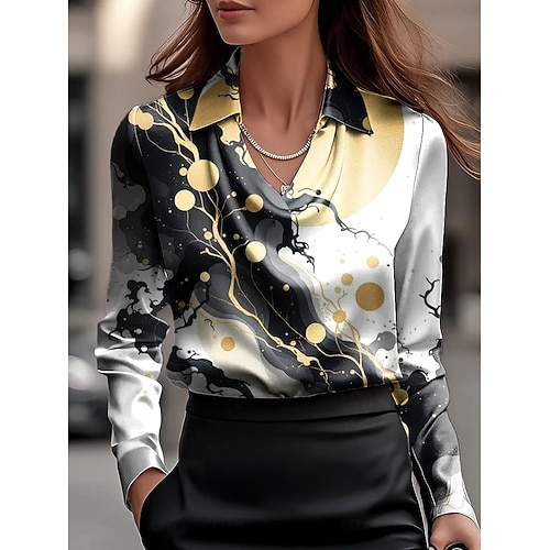 Per donna Camicia Grafico Geometrico A righe Elegante Essenziale Casual Manica Lunga Scollo a Cascata Scollo a V Top Regolari Lavoro Abbigliamento da sera Quotidiano Arricciato Drappeggiato Nero