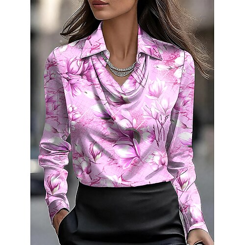 Per donna Camicia Floreale Grafico Elegante Casual Manica Lunga Scollo a Cascata Top Regolari Lavoro Abbigliamento da sera Quotidiano Arricciato Drappeggiato Blu Rosa Viola Verde Estate Autunno