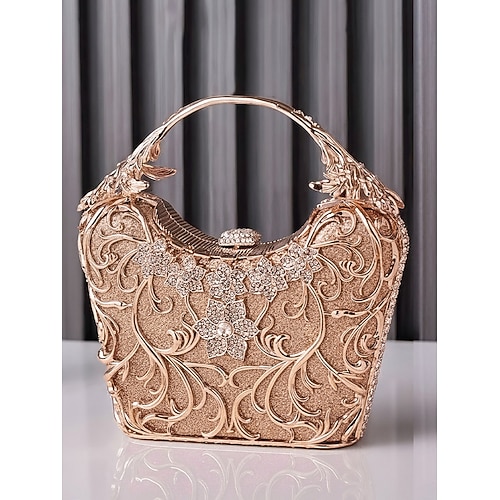 borsa da sera glitterata da donna – vari colori, impreziosita da dettagli floreali in cristallo, accenti dorati metallizzati, include catena per il trasporto a spalla, perfetta per matrimoni, gala ed eventi formali