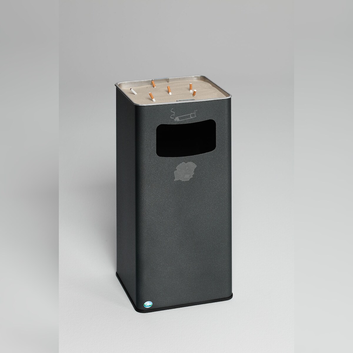 PROREGAL Klassischer Kombiascher eckig | HxBxT 70,5x33x33cm | Verzinkter Stahl | Grau | Mülleimer Aschenbecher Abfalleimer